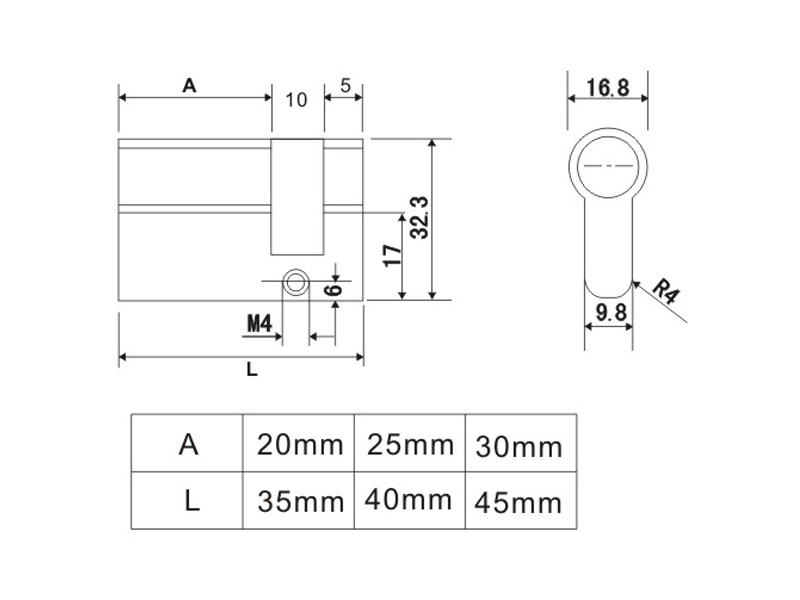 RCR-08半边带拧手锁芯,一边带拧手,单边开门,一般用于管道消防门、隐形门;可定制长度