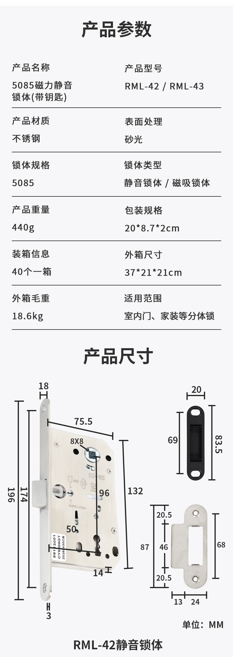 RML-42 RML-43 带钥匙静音磁力锁体