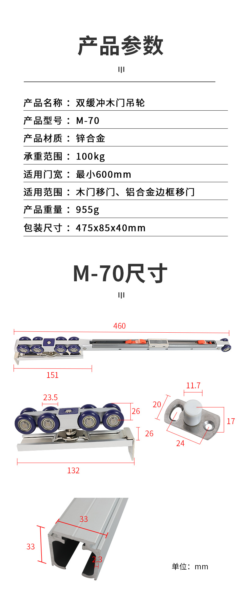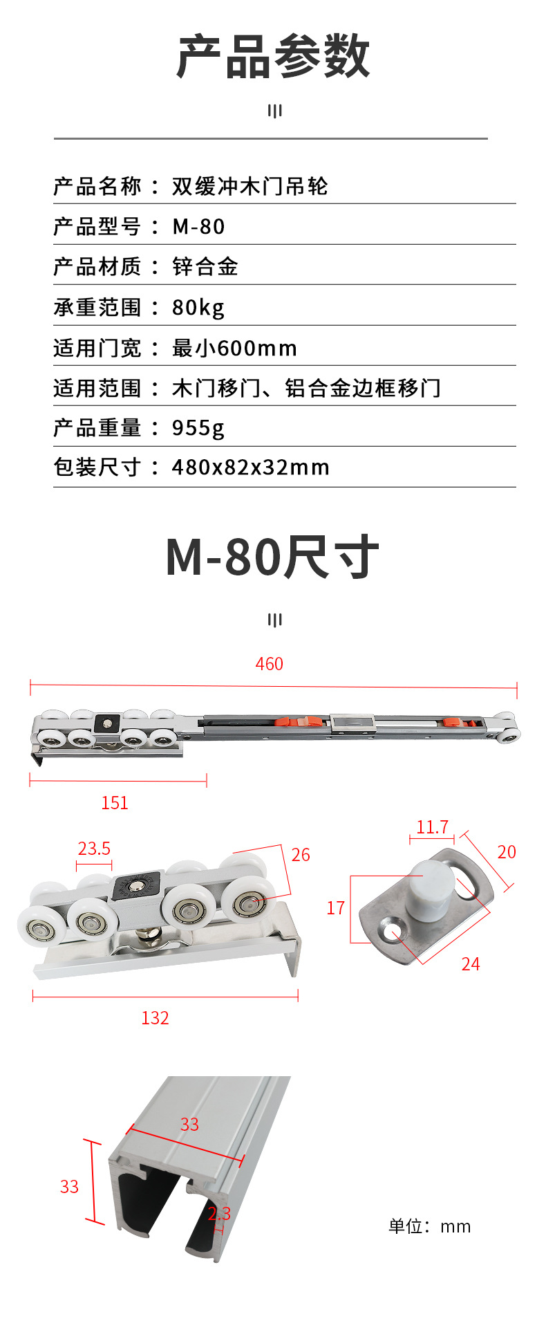 M70 M80 8轮静音轴承吊轮平移门实木门吊轮