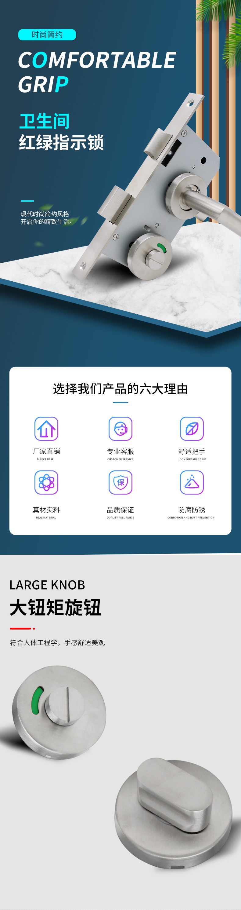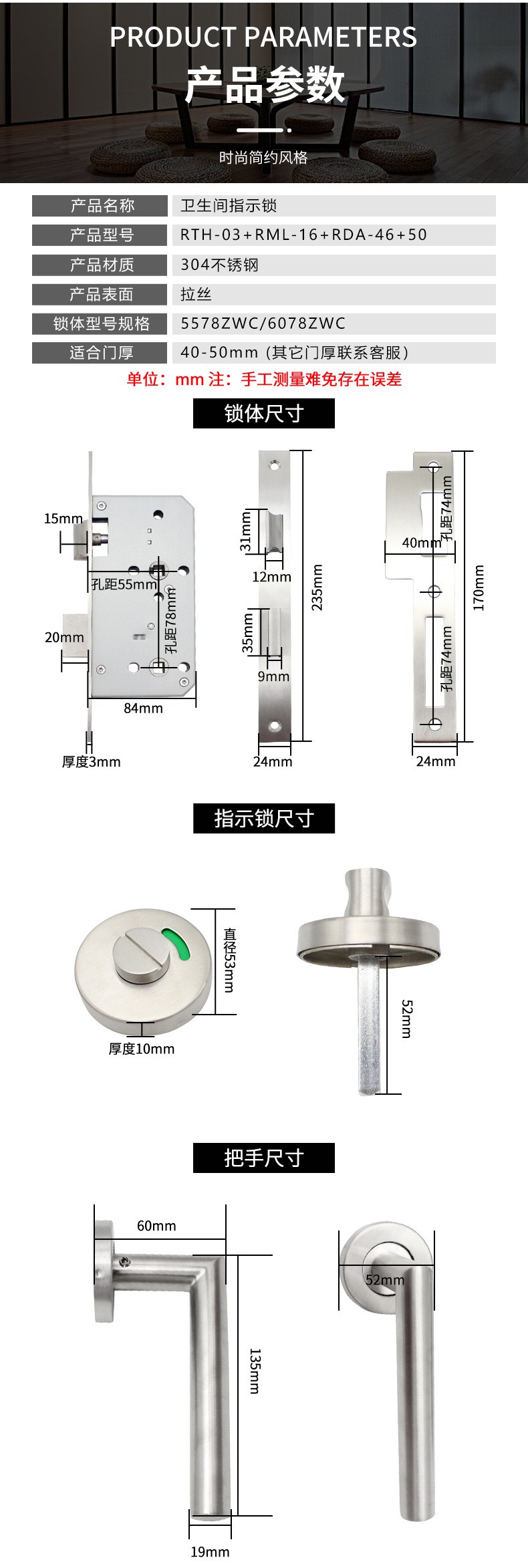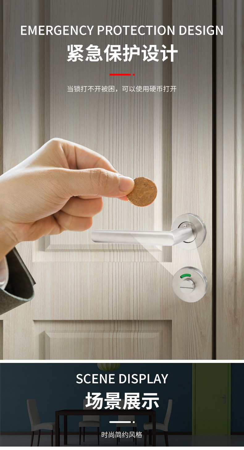 RTH-03 不锈钢直角把手卫浴红绿指示锁