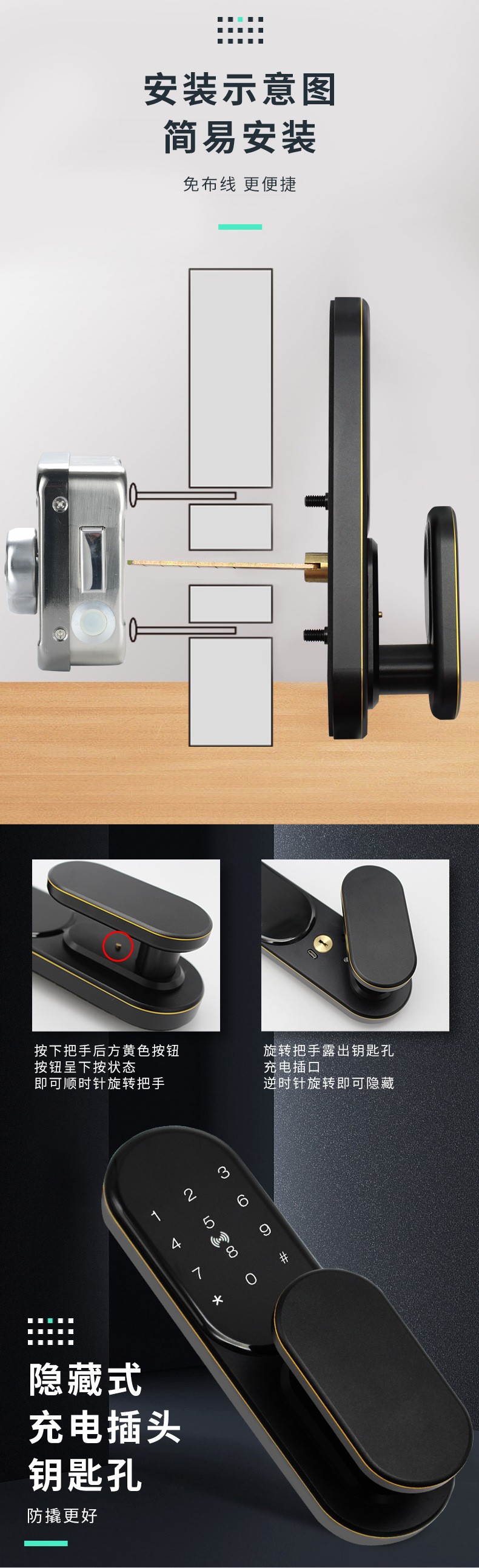 SFL-0015 免布线指纹密码锁