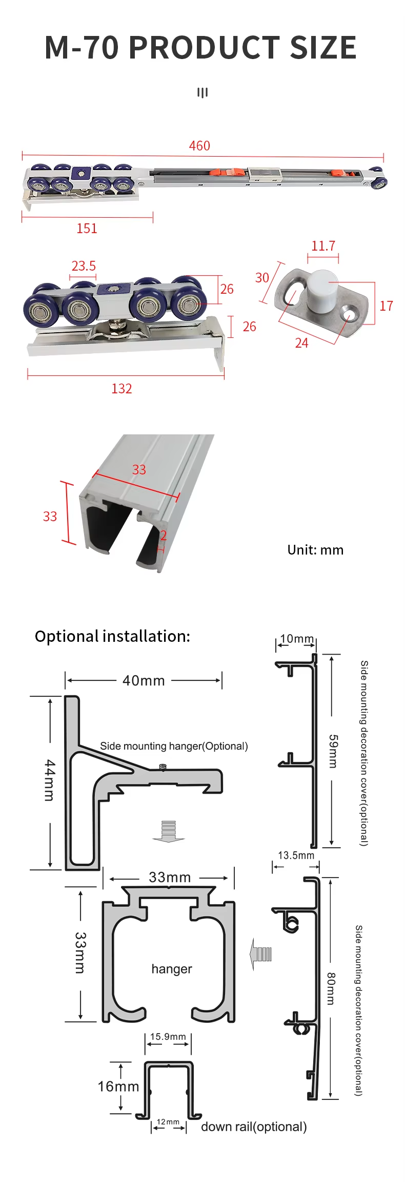 M70 100KGS Silding Door Hanging Wheel Tracks Roller